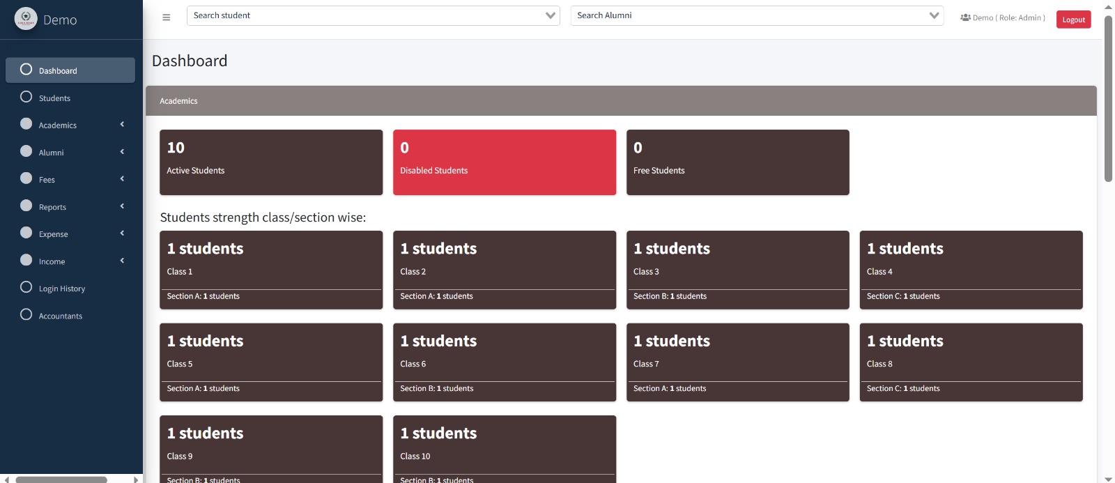 School Administrator“The accounting and fee management features are excellent.” Fee slips, defaulter lists, and financial reports are generated automatically, which has reduced our workload a lot.